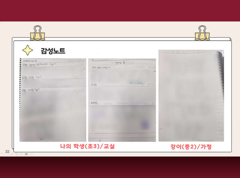 감성노트는 단순한 일기가 아니에요. 아이의 감정, 성장다짐, 오늘의 배움을 함께 기록하면서 아이를 있는 그대로 바라보는 도구라는걸 알게되었습니다.